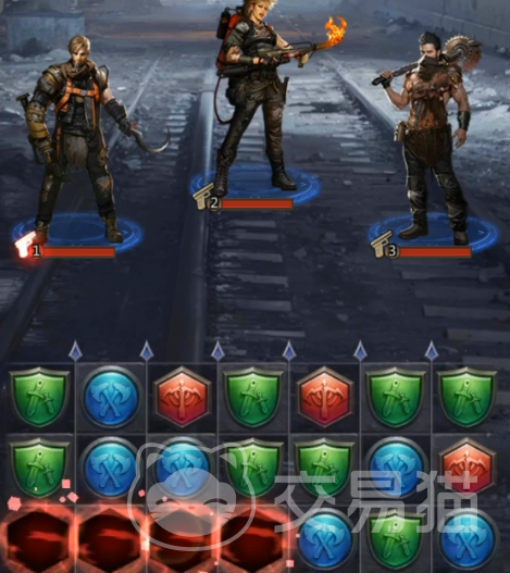 这个解谜其实是一个教学,玩家们需要进行三消便可以进行通过。这个三消也是接下来我们主要的战斗所使用的模式。在开门之后,我们会遇到拦路的敌人,这时我们会在旁边发现武器,正好也有其他的幸存者在附近,我们马上联合幸存者开启战斗模式。我们的战斗便是需要将3-4个一样的纹章连成一线。没连对一次,便可以对敌人造成一定的伤害。很快我们便将来犯的敌人全部打倒。之后男主的妻子不小心受到了感染,时间紧迫,我们马上将其带回了基地。