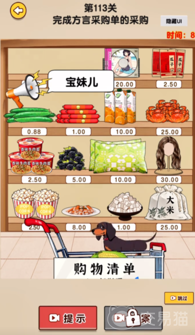 在这一关卡之中,完成方言采购单的采购任务,共有12个物品需要采购,而且这一关相当抽象,并非是传统关卡的解密玩法,而是需要大家仔细看游戏中的文字版方言来区分,极其考验大家的更含量:
