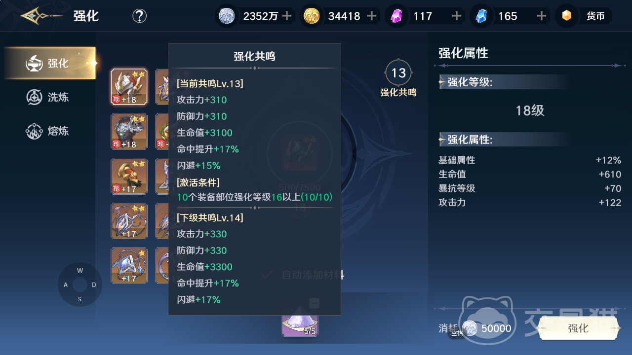 首先大家需要知道的是,装备系统对于战力的加成是有好几个方面构成的,装备本身是一方面,第二个要素就是强化共鸣,然后是属性洗练,其次是属性的熔炼,最后就是一整个套装能够带来的效果了,接下来就通过这几个方面让大家了解透彻。