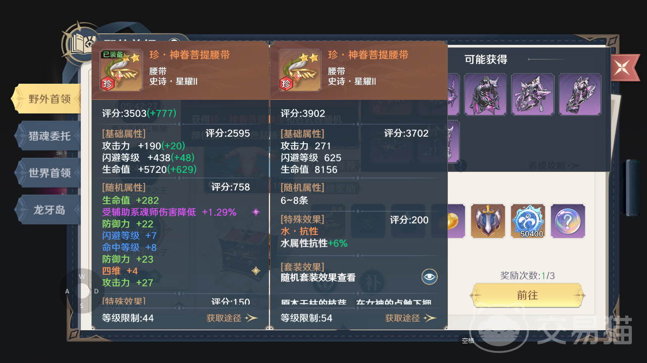 最后就是套装,一般是需要角色到50级之后,这样才能够将套装的效果给激活,从而得到装备额外的属性加成。另外要说的是,有些特殊的装备,本身就有特殊的效果,或者是有属性的加成,所以想要得到这些装备,野外首领以及奇遇任务一定要做,这些特殊装备一般来源于此。