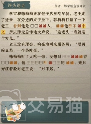 这里大家就可以提炼出来几个有用的信息,既然是从外貌判断出来,说明这个老王长相跟普通人不一样,又不懂韩梅梅说的话是中文,大家就可以判断这是一个外国人,但是老王跟服务员交流是用的中文,说明老王听懂了但是没有跟韩梅梅计较,所以最后韩梅梅道歉。