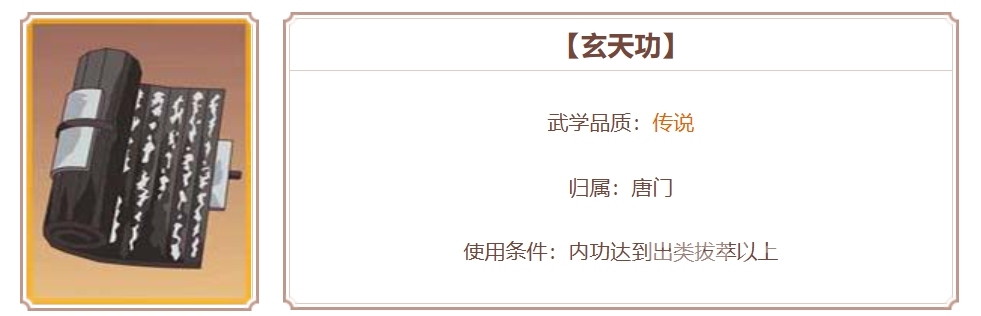 玄天功:它是需要拜师唐门才能学习的一种传说心法,相比其他传说心法,光是获取门槛就低了很多,不过其自带的技能效果只有一个“灵动九天”,这一技能需要主动使用,使用后可获得持续四回合的飞星遁影效果,该效果能够同时增幅角色的伤害和移动范围,相当于在提升输出能力的同时,还大大加强了机动性,所以它的实战作用还是十分明显的,毕竟很多时候移动范围和伤害都缺一不可。