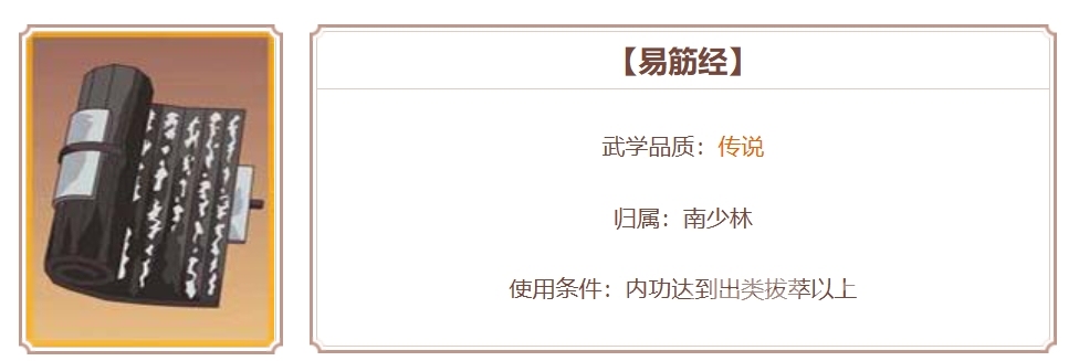 易筋经:该传说心法出自南少林,有着伏魔功法和罗汉功两条技能,其中前者可以提供四回合的伏魔效果,在伏魔存在期间,角色的伤害会随着已损失的气血而提高,最高可以提升至50%,这一提升幅度可以说非常大,能够直接让角色的输出能力上升整整一档。