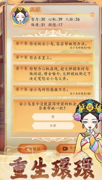 玩家在做选择时一定要谨慎,因为做出的选择会直接将影响角色的发展和故事走向。所以玩家需要根据游戏当中的情况做出最为合适的选择,然后来提高自己的声望和影响力。玩家需要一直注意角色的各项数值,比如颜值、智力和人脉等,玩家需要培养自己需要的各项数值,