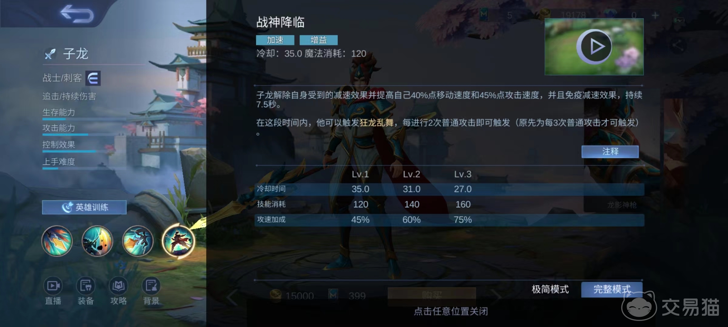 子龙就是一个非常依赖普攻的英雄,这一点在出装备的时候大家要尤其注意,自身非常依赖大招,也只有在大招开启后才可以无视对方控制,在场上快速收割输出。利用好短暂时间内带来的攻击速度加成快速切掉对方射手。实战中的连招可以选择由二技能直接切入,然后接上一技能,穿插进普攻,最后开启大招实现收割,当然也可以在战斗前直接开大招往里冲。