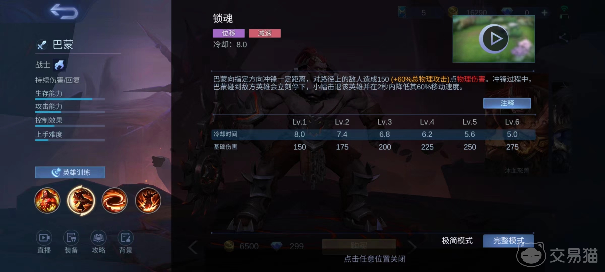 在被动的影响下,巴蒙击杀士兵或者是野怪能恢复自身5%最大生命值,如果击杀的是英雄,则恢复20%的生命值。这也就意味着在线上的时候巴蒙可以肆无忌惮的和对方换血,只要能够快速清兵,就能够保证自己血量健康。一技能向前方冲锋一段距离,对路径上的敌人造成物理伤害,在冲锋的过程中,如果碰到敌方英雄会立即停下来将其击退并,降低移动速度。