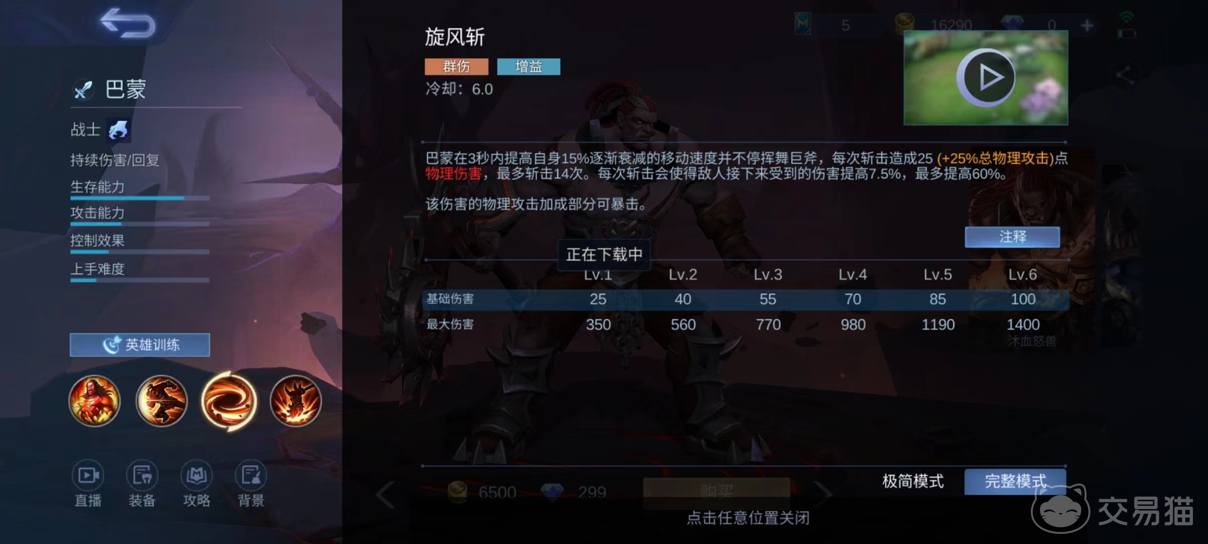 通过这些技能效果我们就已经搞清楚了,巴蒙的主要战斗方式和技能加点顺序。在一级时候先学习一技能,接下来主加二技能旋风斩,可以在线上对敌方进行有效消耗,再利用自己的被动回血,这样可以建立起血量上的优势。大招虽然是爆发性技能,但是一般留到最后使用,在实战中连招方面,先利用一技能位移直接冲向对方后排,而后开启二技能旋风斩,找到对方血量较低的开启大招收割。