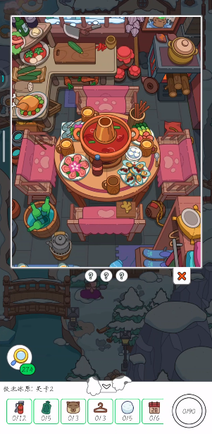 极地地图在温暖的室内,玩家需要收集物品做火锅。首先找到案板上的黄瓜、辣椒切块,完成后拖到左上角的辣椒罐,同时把切块黄瓜放入,完成获得道具腌黄瓜。