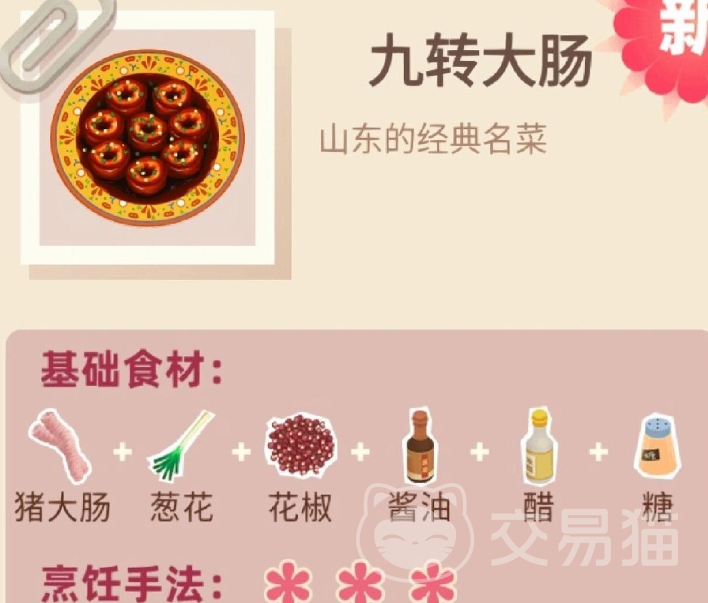 九转大肠制作成功之后,玩家会轻松解锁九转大肠的菜谱。手法的星级越高,代表玩家的评分越高能售卖的价钱就会越高哦!