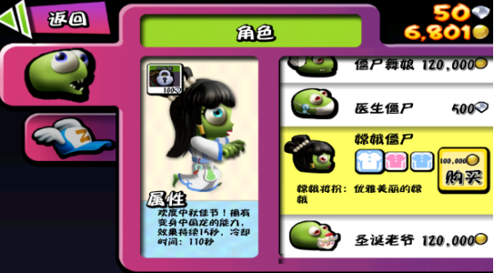 以上关于僵尸尖叫怎样买人物的相关内容就为大家介绍到这里,购买僵尸人物的方式比较简单,找到商城就能一目了然,看到所有僵尸内容,可详细了解有关于近视的属性以及金币的所需数量。