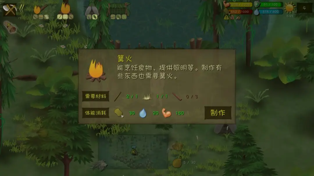 有些比较细比较尖锐的石头一方面可以作为近距离战斗的武器,另一方面也可以用来缝补衣物,同时椰子壳也是有效工具,可以用来盛放水源,或者是当成吃饭的惨剧都是没有问题的,游戏进行到后期的时候大部分的食物都需要用椰子壳去盛放,所以前文才说要多多收集椰子,也是这个原因。另外一个工具就是淡水的过滤器了,使用的原材料有树木,麻绳和树叶,这样就可以对海水进行过滤,保证自己有稳定的淡水供给。