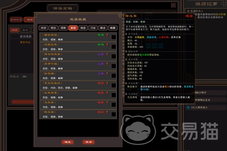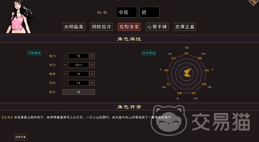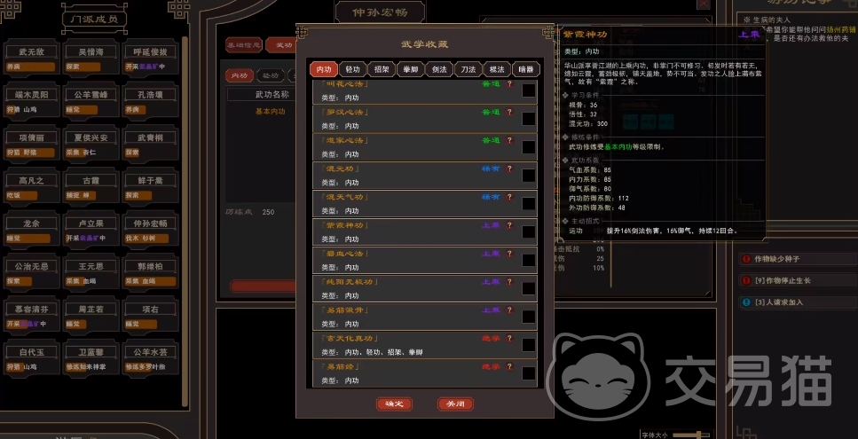 在开局阶段,建议大家优先去针对自身的属性来进行优化,其中得确保角色的每个属性都不低于28点,这个非常的重要,同时房事属性这里的,大家直接为0即可,因为像易筋经这类的武学要求为零才可学习。