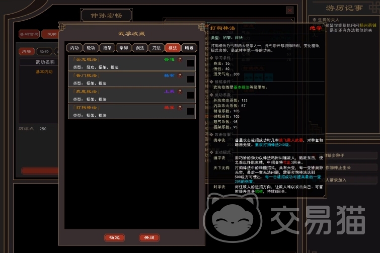 在升级方面,玩家可在各大城池的客栈或街道主干上蹲守,与江湖散人进行交互,这些散人会携带武学书籍和丹药,无论是等级高低都占用5个背包容量,并且可能会增加角色的邪气值。