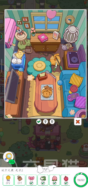 疯狂找东西的游戏玩法简单,点击屏幕上任意物品,就能进行收集,屏幕的最下方有关卡名字,以及该关卡所需要找到的物品,找到所有物品完成任务就能通关。上下左右拖动,双指拖动屏幕放大,找不到物品的时候,可以多点击屏幕尝试,位置错误的话,会显示红色的叉提醒。