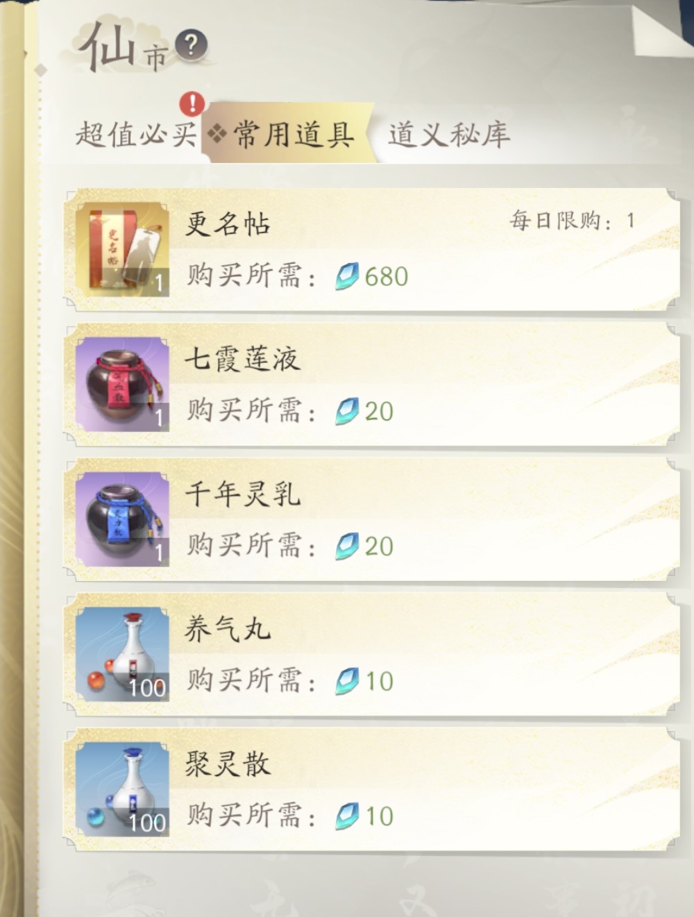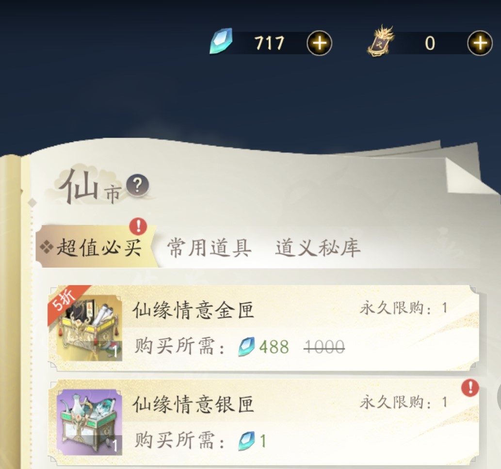 想要在游戏中购买道具的话,也有专门的板块就是“仙市”。在这里能够购买到很多的武器装备和秘籍书籍还有很多的丹药道具等资源。在仙市中需要用到的道具是不一样的,可以先选购需要的道具内容,然后再根据道具需要的资源去进行搜集后再来兑换。