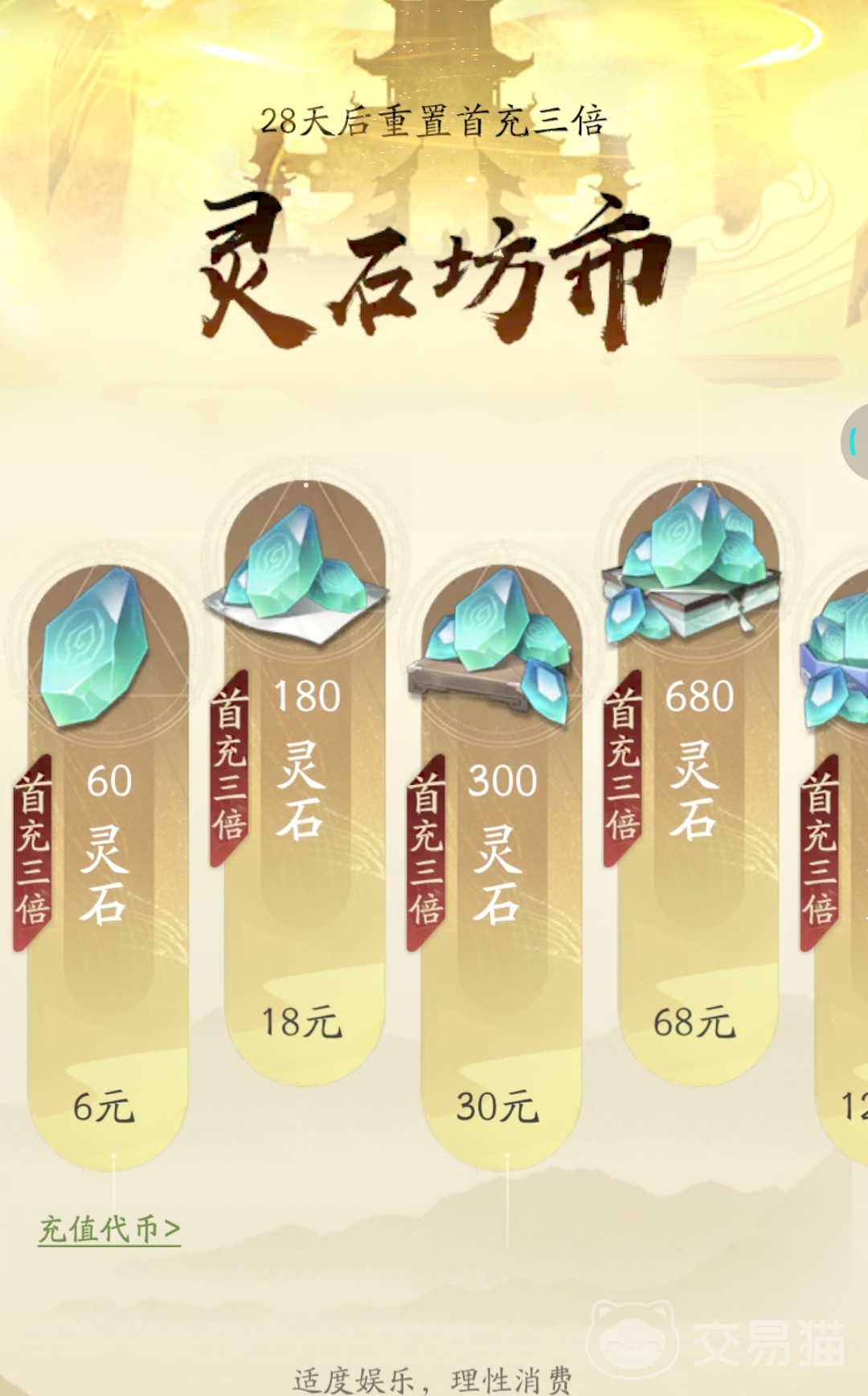 1、游戏内充值。如果说在游戏中选择了剑修这个职业的话确实会需要玩家们微氪下才能很快的提升战力,在充值时也可以直接充值代币,这样也能在拍卖行上有所收获。