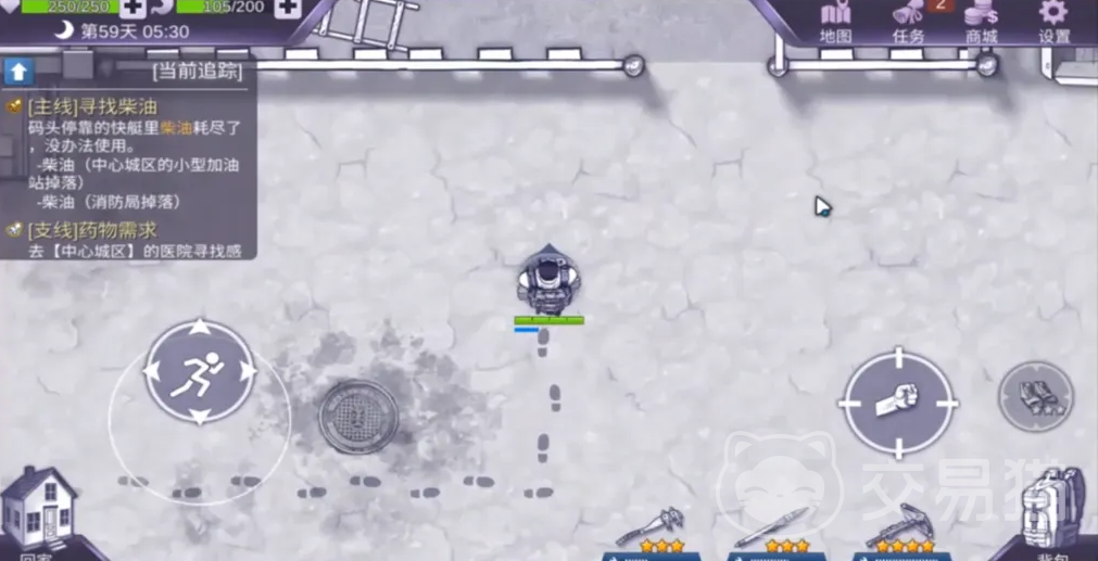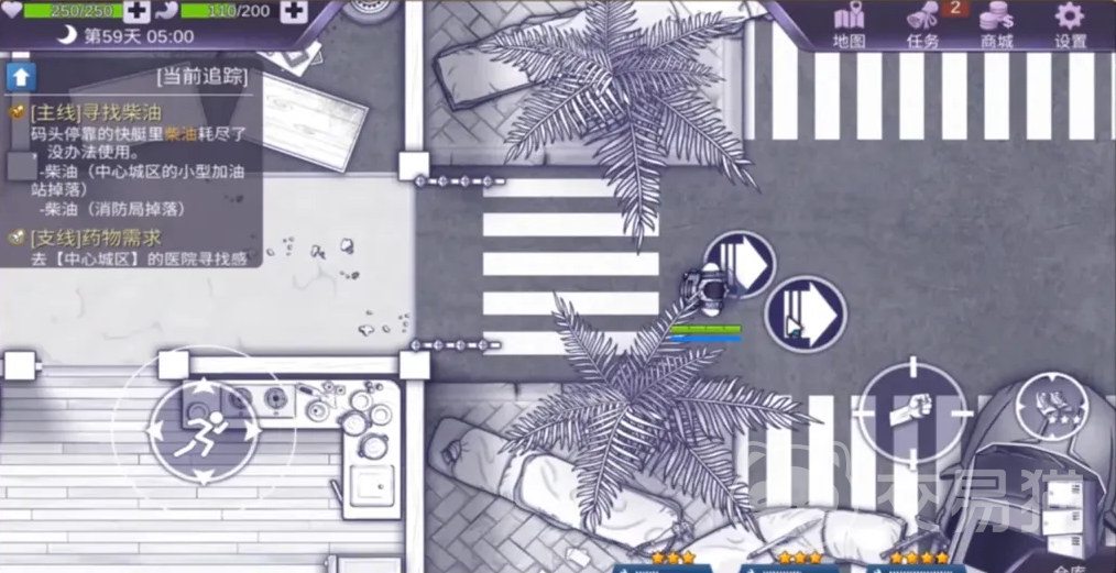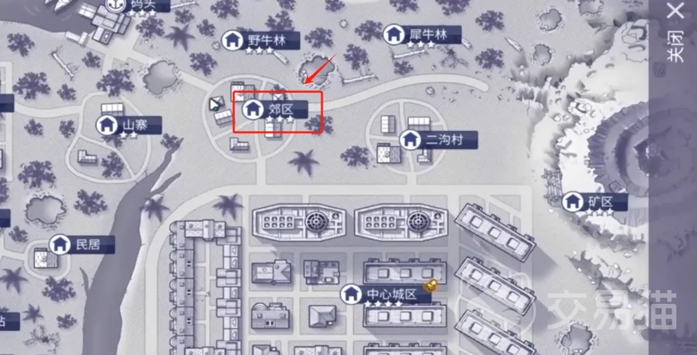 走出生存的基地以后,揍到大路右面,可以看到有上下两个箭头,点击下方的箭头就可以看到整个地图,从中间偏上的位置,紧邻着野牛林的就是郊区,点击以后就会展开地图。