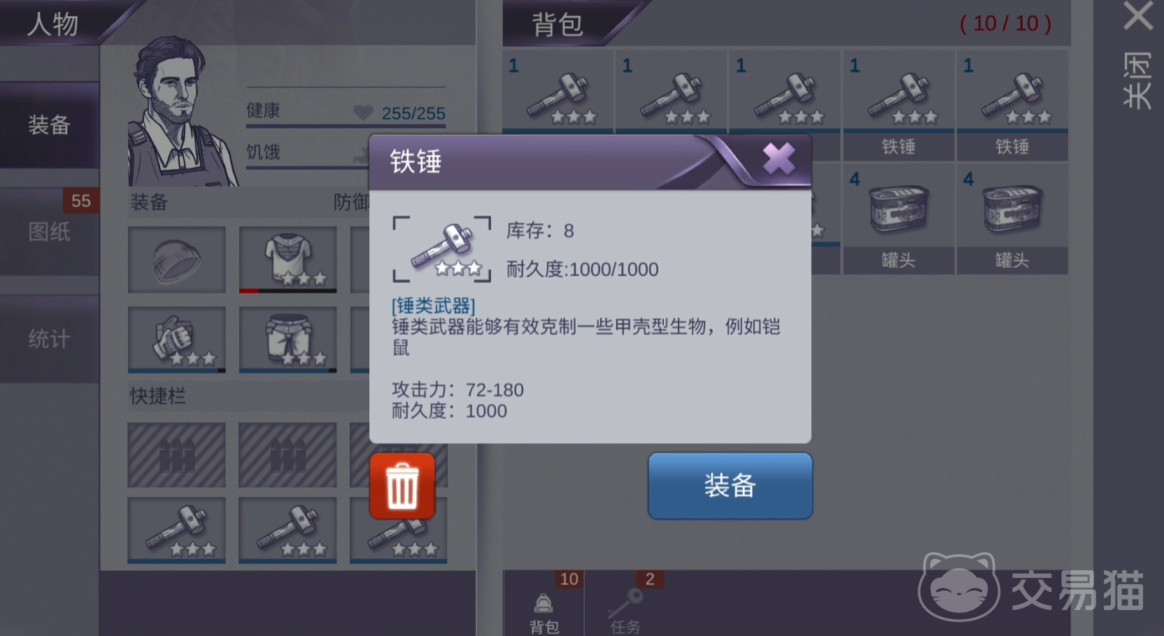 首先大家需要准备至少28把锤子,而且要是三星的,因为锤子对甲壳类怪物的伤害是有加成的,能够达到一次敲击180点伤害,而三星的锤子有1000点耐久力,更耐用。