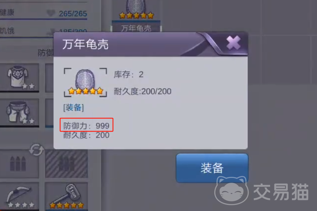 万年龟王是龟王的升级版,它本身没有攻击性,但是它的血量达到了惊人的999999,打败他就能获得一个防御力999且耐久为200的防御神装,但是想要成功打破它的龟壳需要选对工具,还要有足够的耐心。