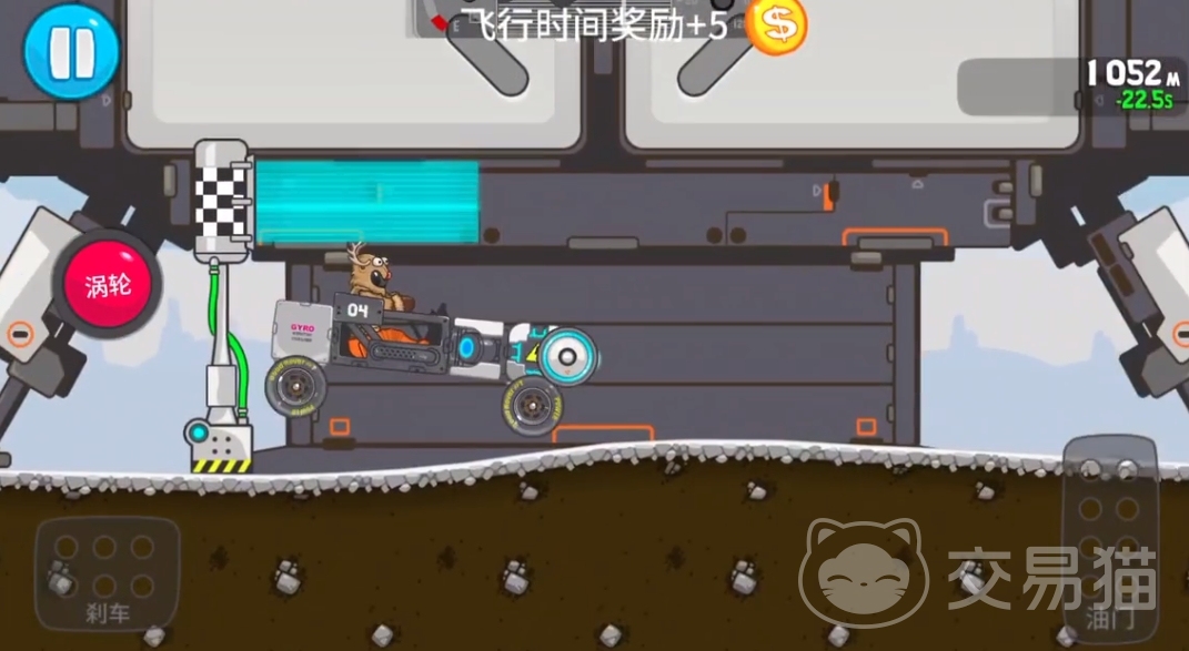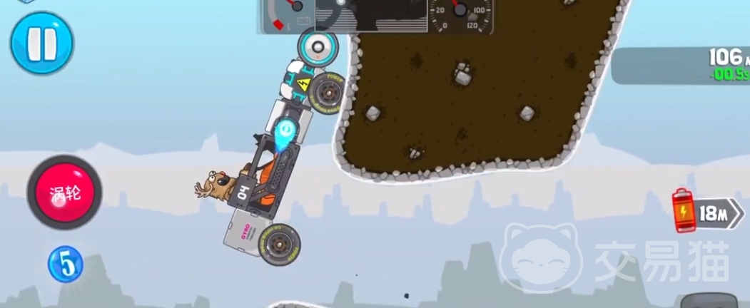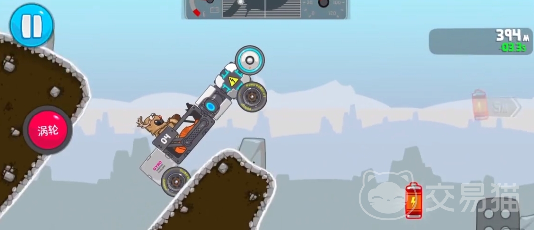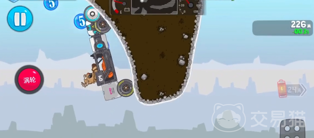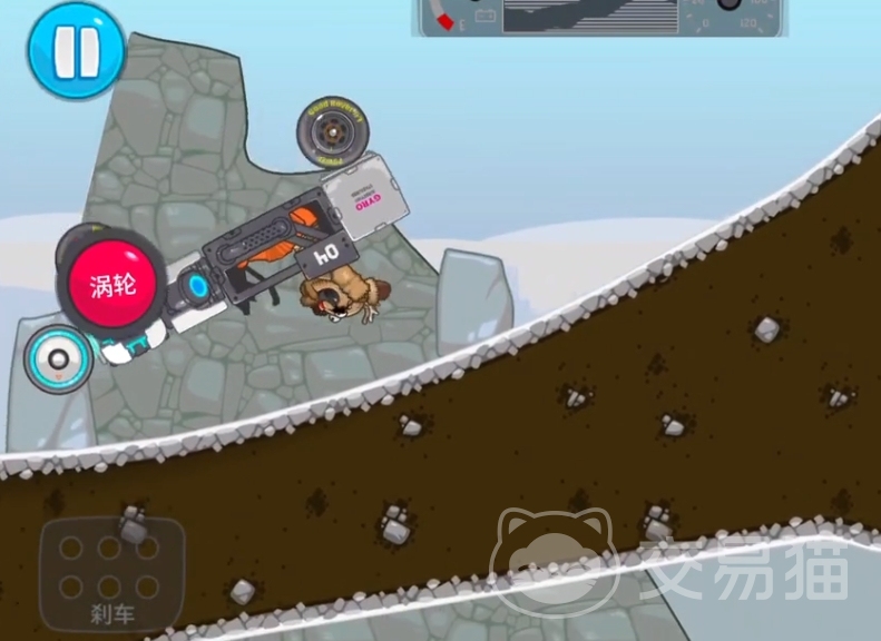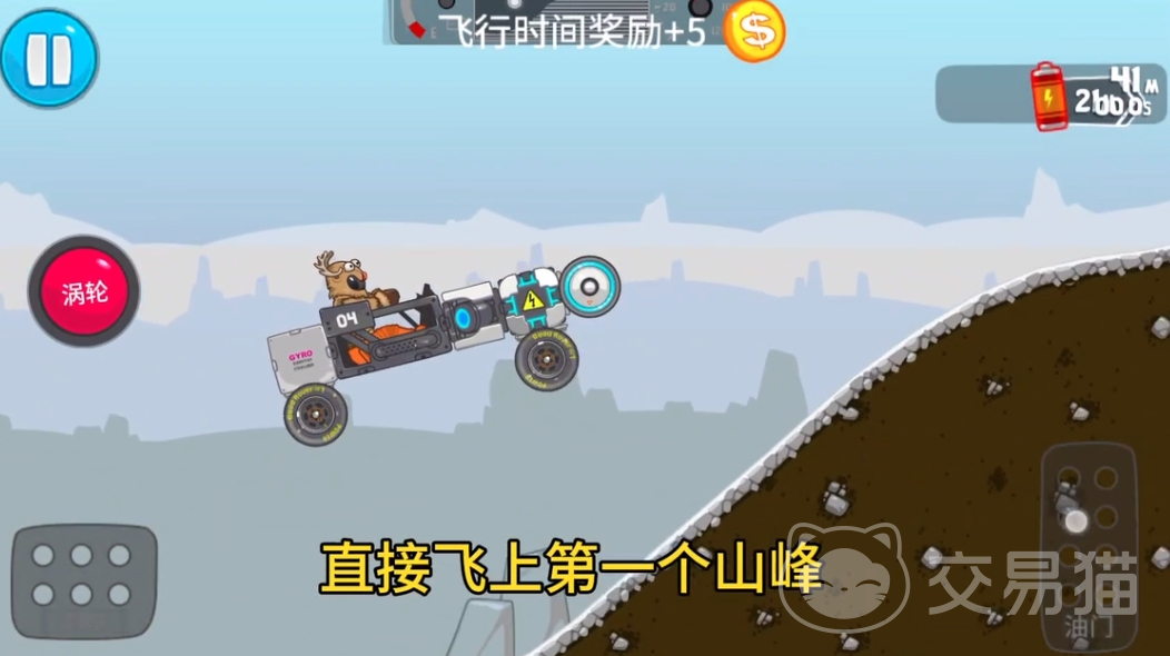 开局第一个就是一个高峰,因为我们有装备涡轮可以直接一个涡轮飞过这个高峰。到达山顶后可以适当降速来稳定下车辆,同时准备好要下坡了。