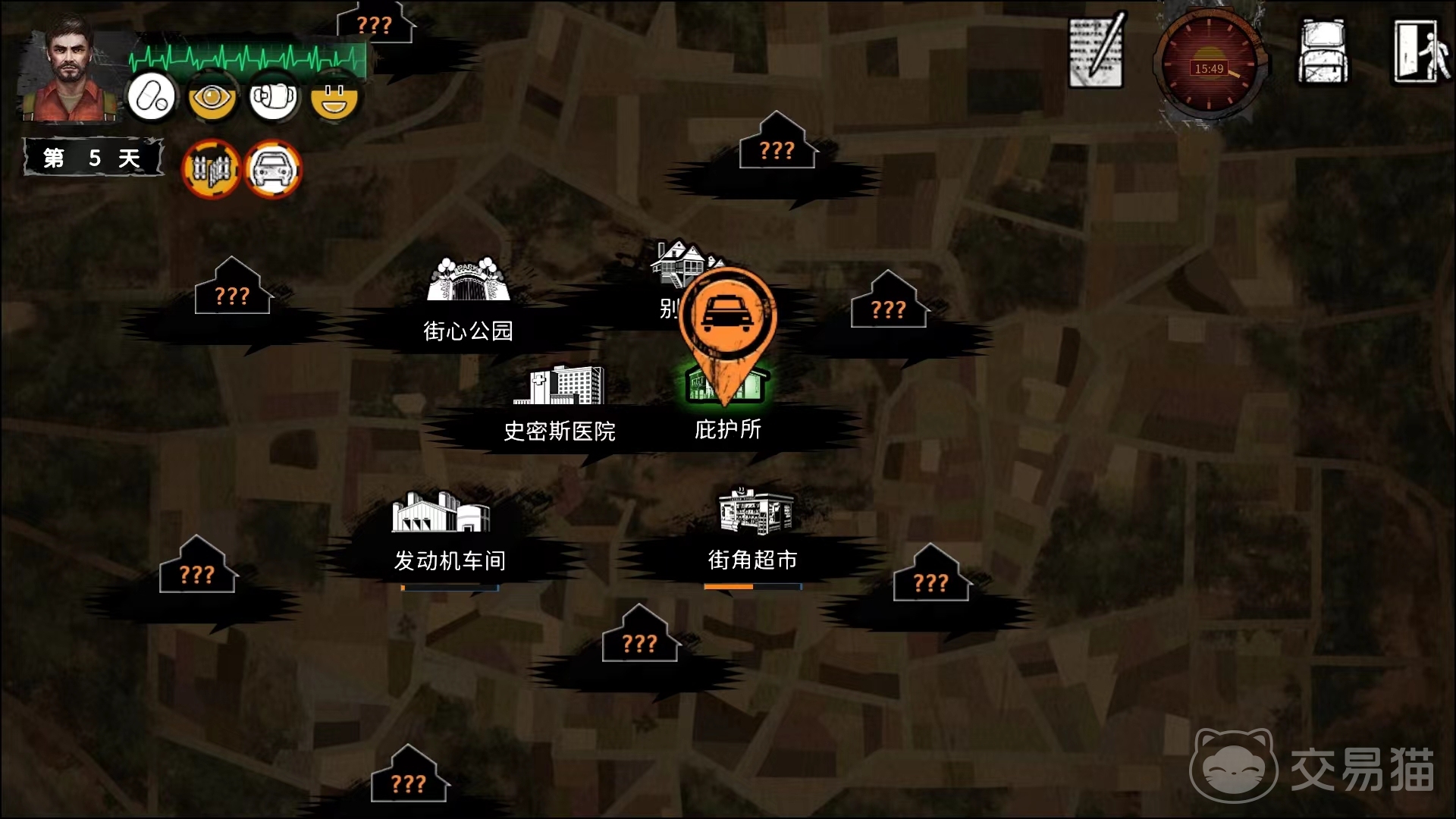 最后是给大家介绍一些在游戏中的小技巧,当僵尸走过来时,如果不想发生战斗可以按跑步键,这样僵尸会原地停下来步骤,也可以让那些被枪声吸引来的僵尸往回走,方便进行背刺。在个人属性方面,如果前三项属性不白色,那么心情会掉的比较快,所以尽量保持白色状态,然后就是恢复心情,烤火、音响、洗澡等都能快速恢复心情。