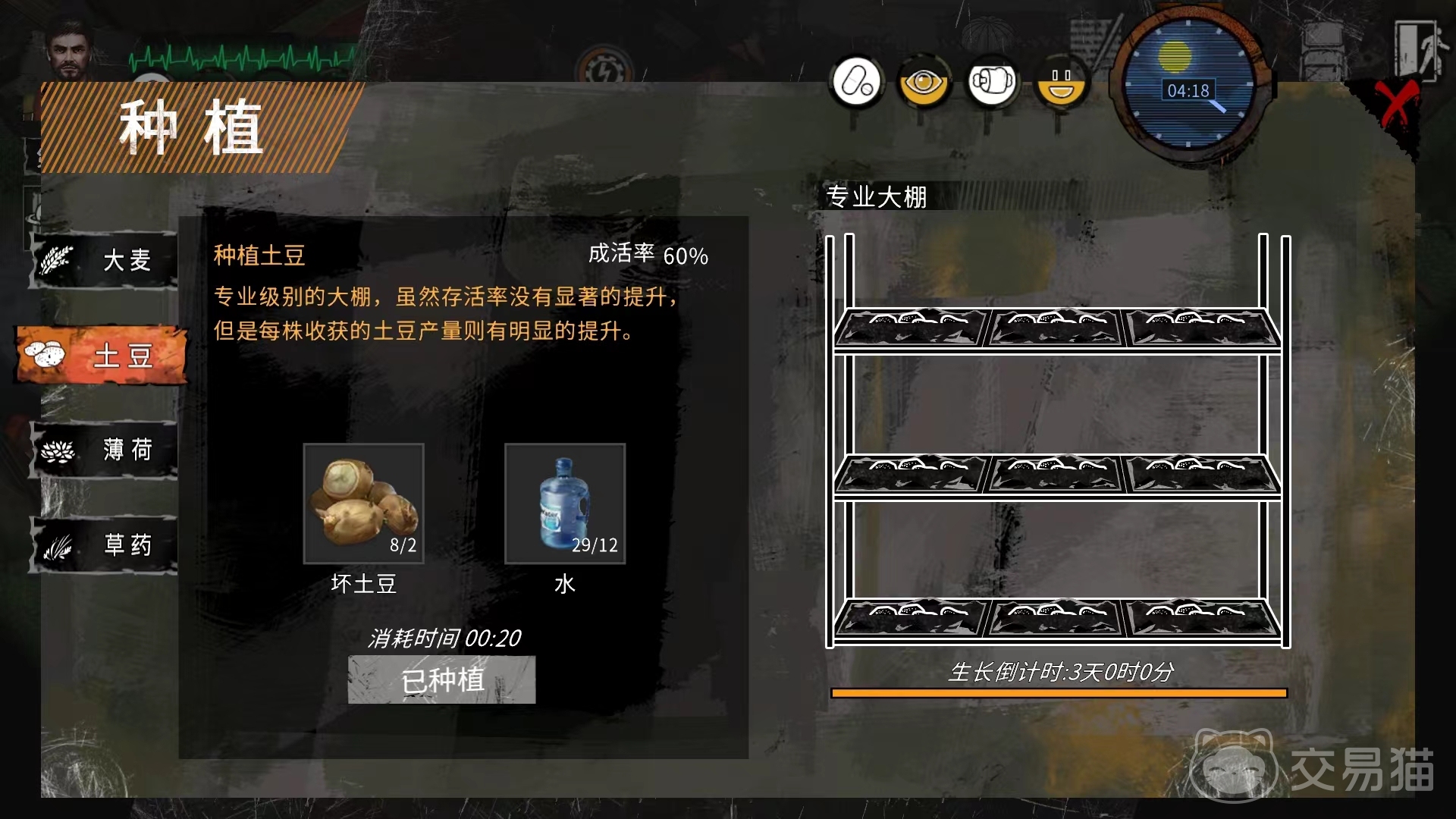 在科技方面,优先去升三级床和四级床以及灶台,因为只有灶台达到二级才能研究各种肉汤,还有循环水器,用于补充淡水资源,大量绷带夹板,捕兽笼,背包,大棚等,这些都是生存必不可少的道具。还有猎枪以及大量猎枪子弹,这些才是科技中真正值得大家前期重点研究的地方。在开局第1天的时候快速升级三级床,因为三级床每天能睡8个小时。如果大棚和背包达到二级就已经够用了,大棚从二级开始就能种小麦,三级背包可以等到北城后再升级。