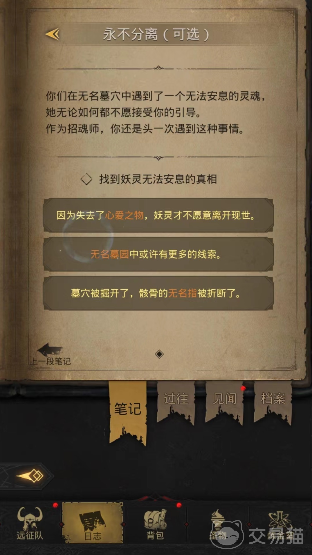 拿到戒指之后需要重新回到无名墓地埋下戒指,此时克莱尔再次出现,和她战斗后得到遗骸。到这里并不算结束,需要来到农场,将之前获取的克莱尔遗体和派恩埋在一起。这样才能顺利完成。大家之所以卡在这个任务的原因,很大一部分可能是没有购买戒指,如果没有买到则无法继续往下触发。另外还有一种可能是大家没有完成最后一步,那就是去农场将两个人埋在一起,完成最后一步永不分离。