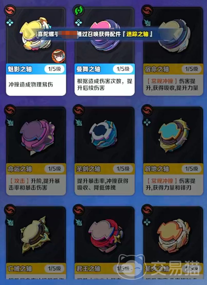 陀螺同样具有灵性,不同陀螺属性差异较大,稀有度、材质以及职业都有所差距,想要提高上限需要获取“誓灵“来提升综合素质,高等阶的陀螺天赋上限更高,培养后输出会更强力。获取方式一般是通过抽取和参加赛事获取,当然氪金抽取的角色会更强力甚至有稀有天赋,而参加赛事获取的陀螺需要通过晶片来提升素质或进行合成,同时需要获取环轴才能打造陀螺。