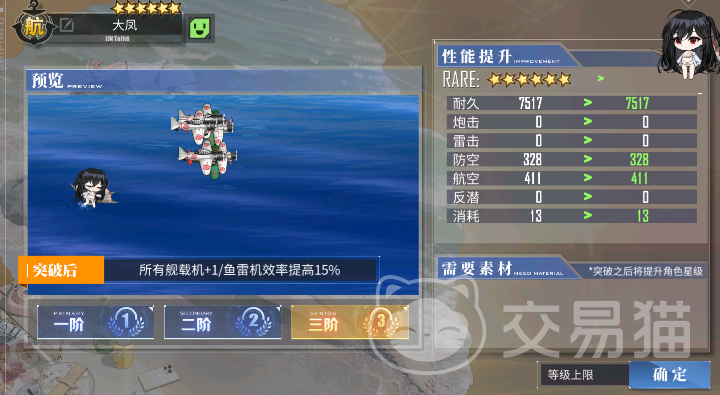 大凤的强度其实一般,即便是在经过补丁和专武加强后在航母中也排不到前列,主要还是航空白值太低了,优势是高耐久重甲,但作为纯输出航母,肉度又不是多重要。不过即便如此,大凤因为造型好看,还是有着很高的人气,而且还出了很多皮肤。