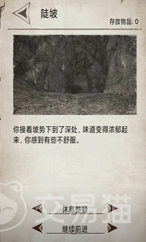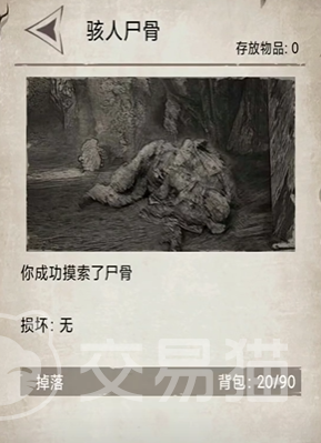 进入之后大家可以先选择继续前进,然后遇到一具看不出面貌的尸骨,这里大家可以选择搜索一番尸骨,又或者是放弃继续前进。推荐大家选择搜索一下,虽然有的小伙伴感觉有点不太礼貌,但是能够在尸骨上搜到不少好东西,像是绷带,药草等。