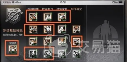 还可以将护甲制造冷却以及降低武器的天赋放入到其中,可快速地提高制造的效率。还有一个可以提高爆率的武器护甲拆卸材料也是很不错的。