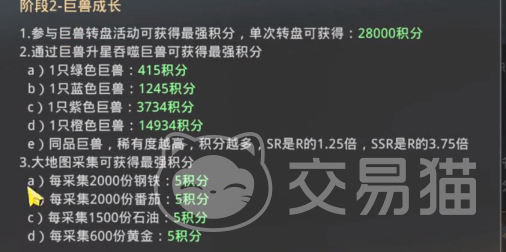 巨兽成长是指通过抽取的方式来得到积分,另外在大地图中还可以累积积分。