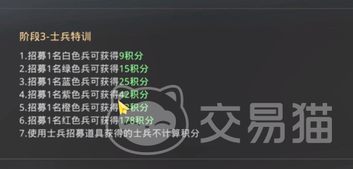 士兵特训主要是通过士兵升级,还有招募的方式来获得积分,要是玩家获得红色士兵,就能额外得到许多的积分。