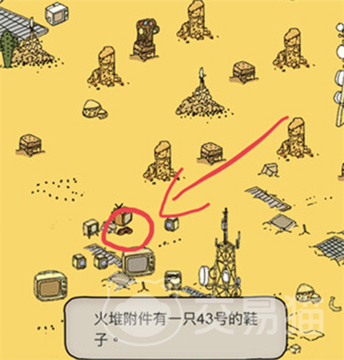 第6个:43号的鞋子,在沙漠的左下角,电视机旁边的红色物品。