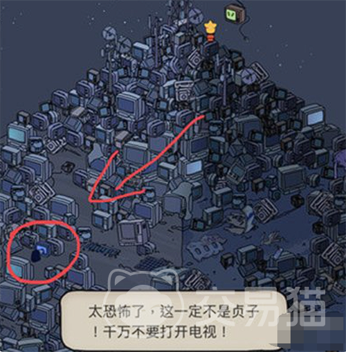 第3个:蛇,在电视机堆放的左下方,如图所示。