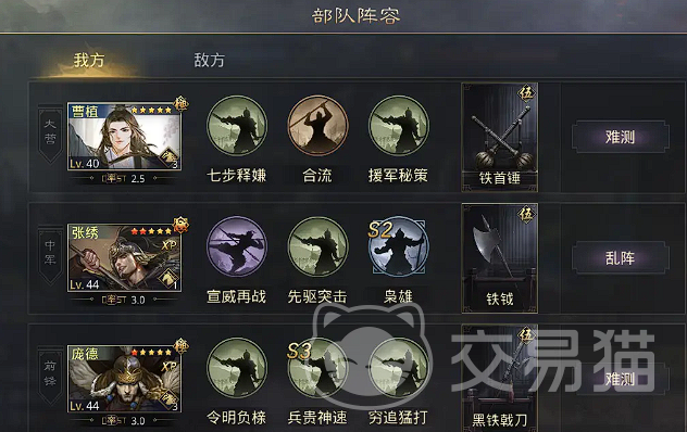 而队伍配置上曹植的恢复能力需要与其他武将的战法频率行程相互匹配。与能够频繁发动主动战法的武将如夏侯渊、张宁等搭配,可以最大化曹植的战法效果。而且曹植的“七步释嫌”战法在触发时不仅能恢复兵力,还能在一定程度上提供减伤效果,这对于抵御敌方的爆发伤害有着显著的作用。可以说是一个防守型阵容的强力武将了。