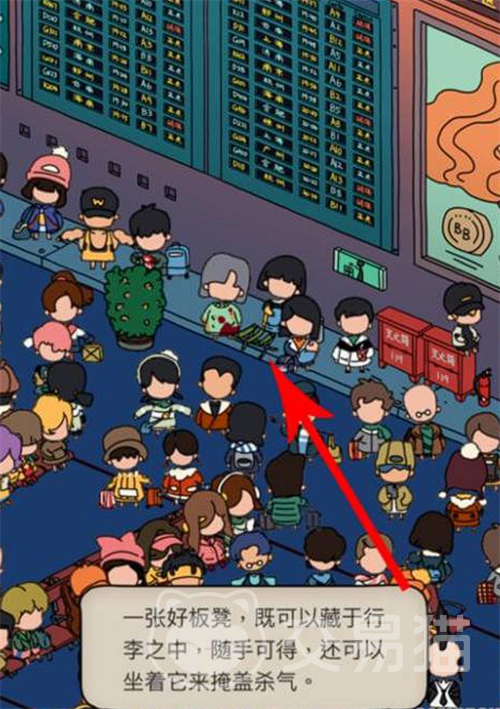 第1个:板凳。在车站场景里面,告示牌下方位置。