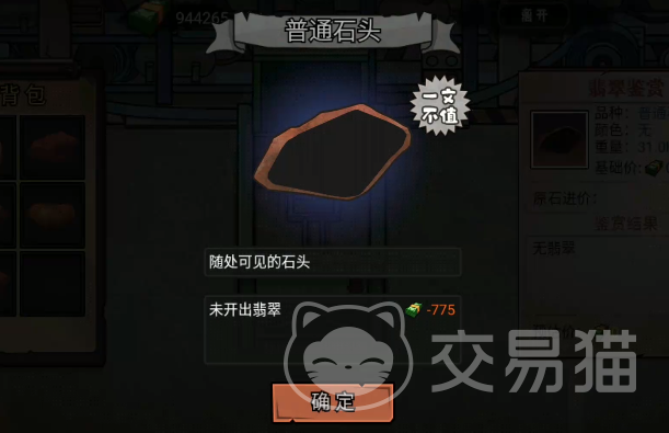 如果想要在游戏里购买玉石,那可以看一下在玉石下面标注的玉点,玉点越高,代表里面开出优质育才的几率也就越大,找到心仪的玉石之后,可以直接点击进入到详情页面,这时候可以观察到原石的具体样貌,可以在原石上看一下能透出底色的一般开出的几率比较高,因为购买原始本身就是存在很多运气成分,所以有很大一部分原石,不管外观如何,里面能开出的都是对于玩家来说不值钱的种类,如果想要在游戏里购买原始玩家要准备充足的资金。