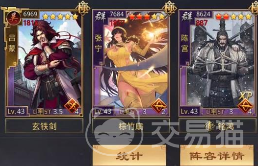 中等级别阵容推荐张勋+公孙瓒+蔡瑁,依次对应劫粮+反击、重伤+追击、陷阱。