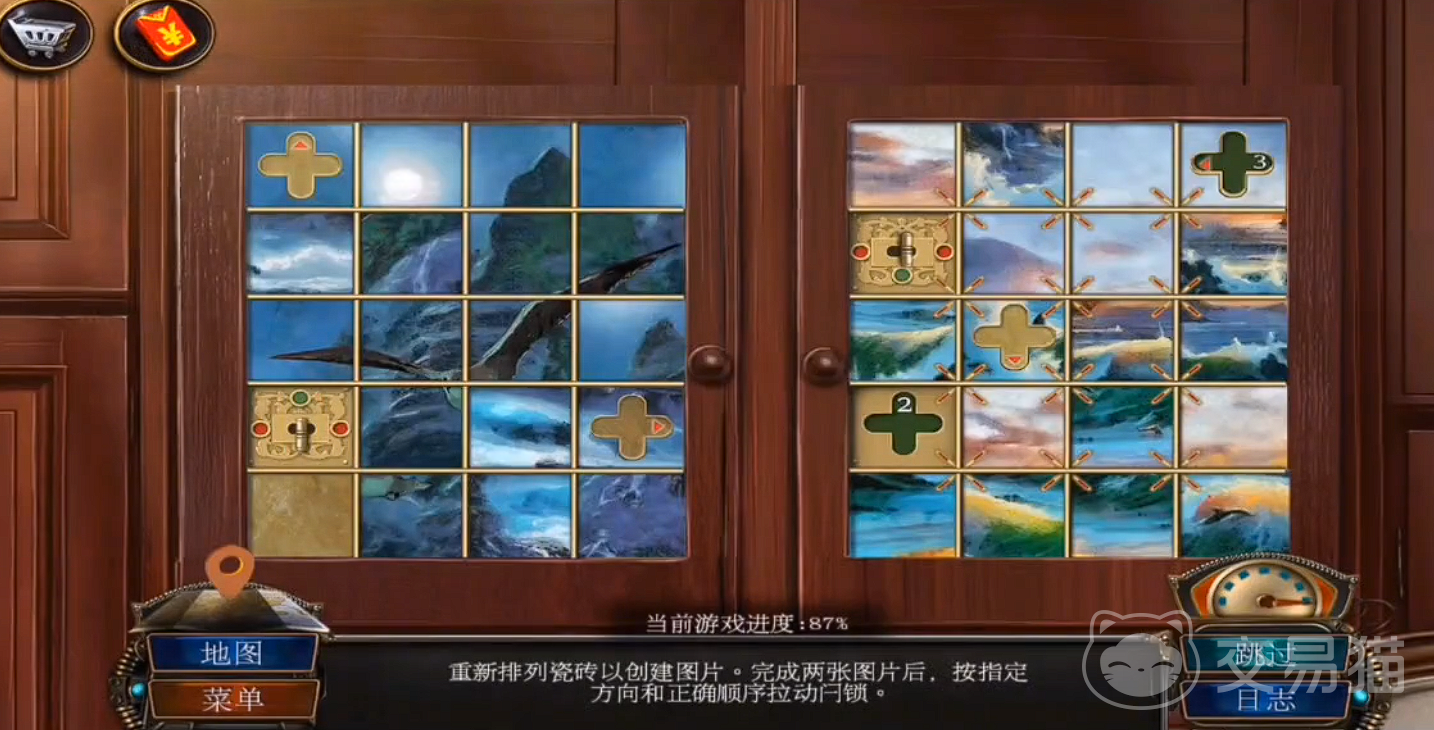 当玩家拼接出大部分瓷砖后,剩下的部分就相对容易了。这时只需根据剩余空白的形状和大小,以及剩余瓷砖碎片的边缘和图案,就可以迅速将它们放到正确的位置。当所有瓷砖碎片都正确拼接在一起后,玩家将解开这一谜题,并且通常会发现一个隐藏的线索或物品,这将帮助玩家继续游戏的冒险。只要大家够耐心、够细心就可以顺利解开谜题。