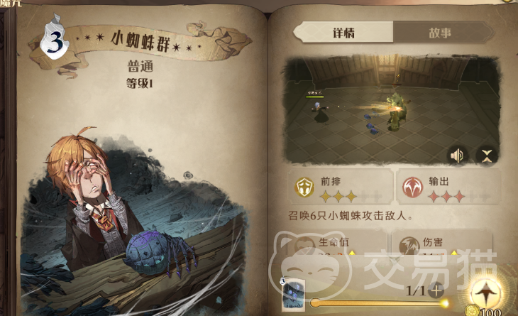 【小蜘蛛群】新手类的技能,在新人入学阶段获得的第一个咒术,在释放的时候,是可以在自身附近召唤出六个蜘蛛,蜘蛛可以当做半个前排和输出来使用,毕竟人多力量大!而且这个技能升级过后,伤害会变得更加的高,前期没有咒术可以使用时,推荐选择升级此咒术!