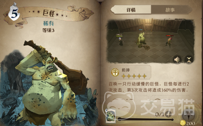 【巨怪】这个咒术比较像是伙伴卡,在进行召唤的时候,可以召唤出一个行动比较缓慢的巨怪,巨怪会对敌人造成两次攻击,而第三次则会获得一个攻击强化效果,不过伤害不是特别的高,可以作为一个前排来搭配使用!