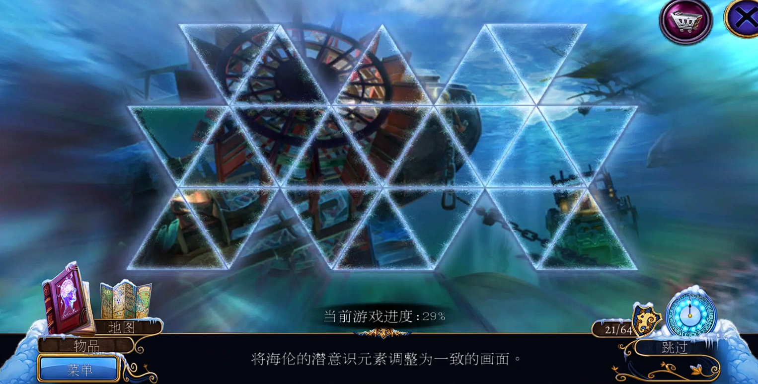 第四关:桑德拉的咖啡馆在咖啡馆中,玩家需要观察玻璃门上的月亮装饰,以及吧台上的开瓶器。使用开瓶器打开汽水,然后将汽水与苏打水混合,制成苏打可乐。将苏打可乐倒在地面上,会发现破碎的瓶子,这是解开下一关的线索。
