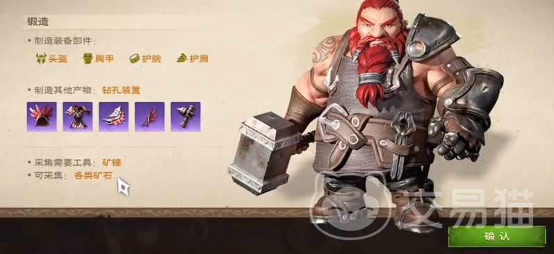 首先要带大家看的是锻造师这个生活职业,恰如其名,他在游戏中具备锻造的能力,简单一点来说就是他可以打造各种装备,不管是头盔、胸甲还是护腕都可以,而且这个打造还不分职业,不管是什么职业的装备他都可以随意打造,而且可以按玩家的职业来打造适用的装备。另外,锻造师还有一个采矿的能力,拥有这个能力的他可以随意采集矿石。在看完第一个的技能情况之后,就轮到第二个职业炼金术士了。
