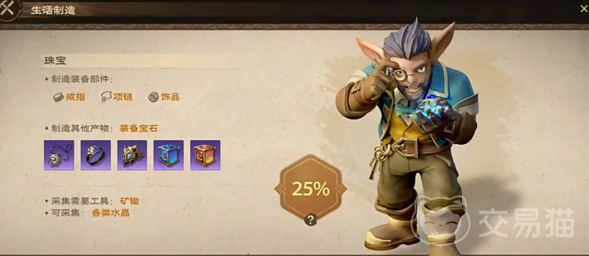 在了解上面两个生活职业后,接下来就要带大家来看第三个生活职业珠宝师了,这个职业用于制造饰品的能力,另外还用于采矿增加宝石掉落率的能力,前者制作饰品的能力没啥好说的,不算出色,这里主要需要看的是他的宝石产出能力,这个能力是很有用的,可以产出大量的宝石,而这些宝石是可以直接给装备打上然后进行附魔的,这样装备的实力将会变得更强的,因此只要选择了这个生活职业,那自身的装备属性很容易就能拉到上限,这就是珠宝师的技能情况了。