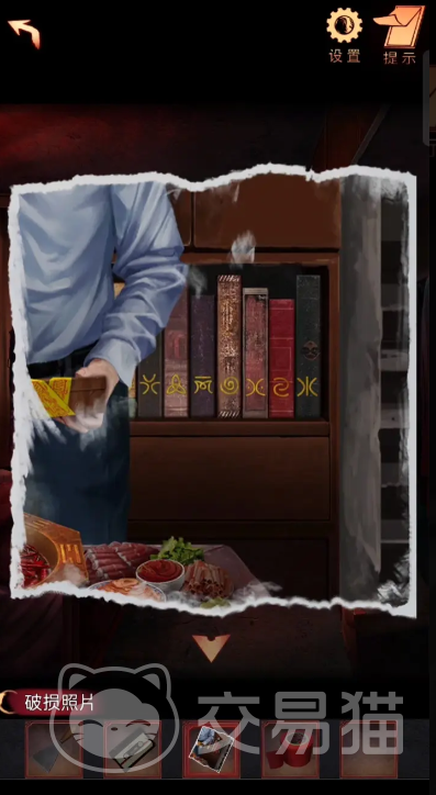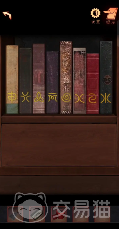 进入到门中可以点击床上的盒子,从盒子里面可以得到钥匙与符纸,再点击抽屉拿到火柴,然后到房间的外面用火柴将符纸给烧掉,接着回到楼下解开时钟的机关可以得到一个插头,再重新上楼,点击床旁边的铁盒子从铁盒子里面拿到胶带和一张破损的照片,按照这张照片的提示将书架上的书全部重新排列一遍,这样就能打开书架下面的抽屉。
