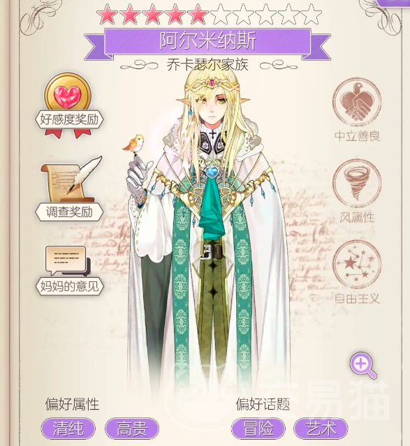 阿尔米纳斯不仅颜值高,而且他的性格也是非常温柔自由的,给不少玩家们留下了深刻的印象。如果你想成功拿下这个角色,不妨按照小编的这篇攻略赶紧上线试一试,获得他的更多青睐哦!