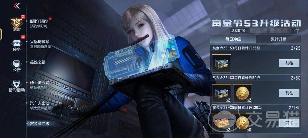 2、充级技巧:如果大家想要以最低的代价拿到更多的奖励,那么新赛季开始之前确保有45级左右的赏金积分卡,第二阶段初期发力本阶段的任务目标是在赛季初的冲击活动中尽量升到150级。