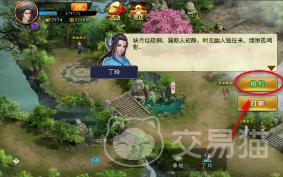 玩家如果想要得到丁玲,在招募时就必须要打好关系,先和对方熟悉,可以进入到峨眉,然后通过结识的方法来加深彼此之间的关系。接着双方之间就可以展开对话,在对话之后可以看到有一个相约的选择。