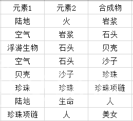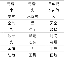 《简单的炼金术》是一款基础的两相合成类游戏。本期将由小编来给带来关于这款游戏的,简单的炼金术图鉴合成。在游戏中由扮演成炼金术士的玩家们,通过对土”“水”“空气”“火”这四种基本元素来进行炼金,从零开始在宇宙当中创造出来各种森罗万象。采用了两个两个这种相互合成的游戏玩法这款游戏,这游戏中最初也就只有“土”“水”“空气”“火”四种基本元素,再由这些元素组合起来并创建新的元素。